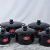 Juego de 5 Ollas y 5 Tapas en Aluminio, Color Negro.